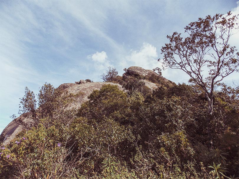 A partir do bicão, a subida começa pra valer, sem dó. O “sofrimento” é curto e dura aproximadamente 1 hora. Nesse trecho tivemos o privilégio de encontrar diversos mirantes, mas a Pedra da Sacerdotisa foi a que mais se destacou, já na parte alta.