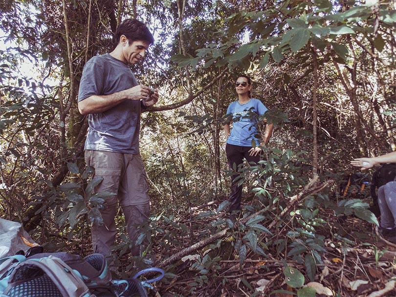 Na Pedra das Flores, Ronaldo encontrou colegas de profissão, que logo nos auxiliaram e tomaram conta de nossos mochilões, para que então pudéssemos subir o Pico do Lopo sem maiores dificuldades – a distância da Pedra das Flores até o Pico do Lopo é de aproximadamente 30 minutos.