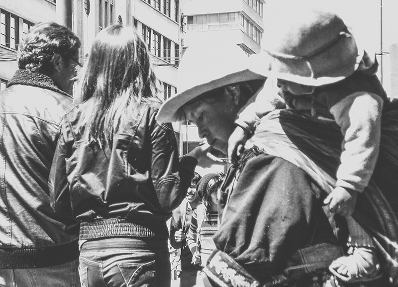 Percebi que andar pelas ruas de La Paz era uma oportunidade de mergulhar na cultura indígena. O aspecto exótico e extrovertido das cholas se limitam à aparência, uma vez que elas são tímidas e de difícil diálogo – pelo menos para os turistas que denotam evidente curiosidade. Outro grande empecilho de comunicação é o idioma: muitas falam apenas as línguas indígenas Quechua e Aymara. Elas são um paradoxo apaixonante, exóticas aos nossos olhos, mas demasiadamente discretas e tímidas para um contato.